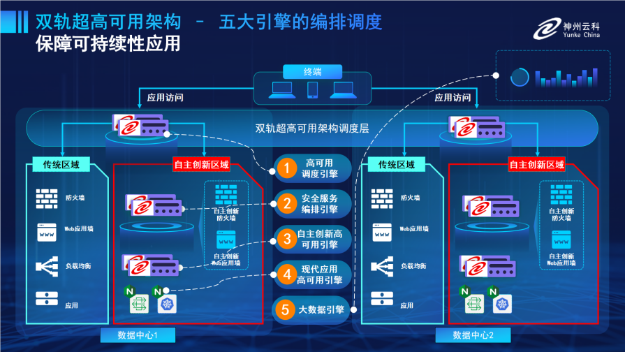 为满足数据中心双轨建设信创区和非信创区跨域协同,神州15vip太阳通过5大引擎实现双区无缝切换,跨域协同。